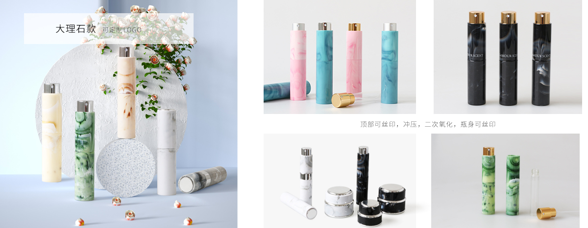 10ml大理石紋旋轉噴霧瓶 便攜式香水分裝瓶帶中節